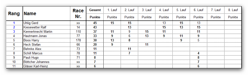 Jahresendergebnis Unlimitedklasse 2012