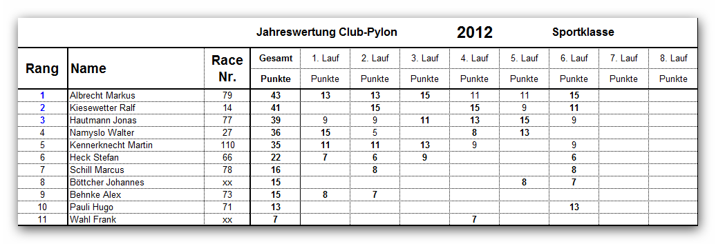 Jahresendergebnis Unlimitedklasse 2012
